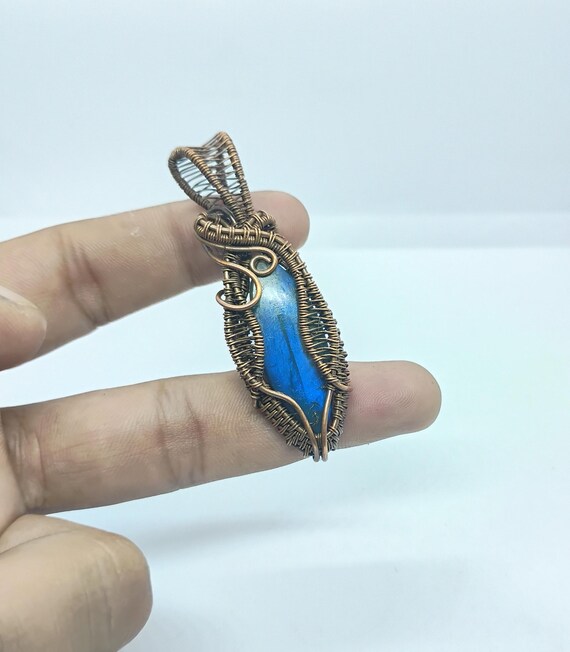 Blue Labradorite Copper Wire Wrapped Pendant | Artisan Handmade Jewelry | Perfect Birthday Gift | Ideal Gift for Her/Him | Free Delivery