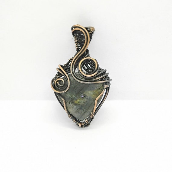 Handmade Labradorite Gemstone Pendant, Copper Wire Wrapped Jewelry, Copper Pendant Necklace, Gemstone Birthday Gift, Gift for Her/Him