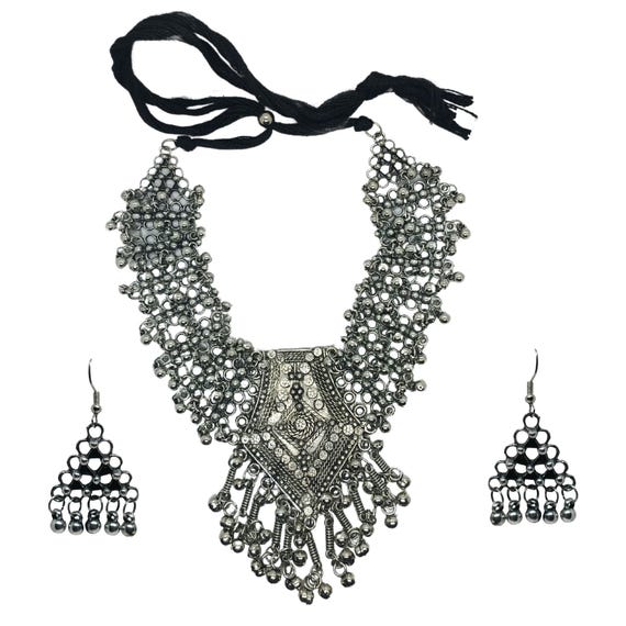 Indian Jewelry: Pakistani Jewelry, Afghani Jewelry, Bohemian Necklace Sets, Oxidized Chokers, Silver & Black Choker Sets