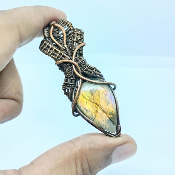 Handmade Labradorite Pendant | Copper Wire Wrapped Jewelry | Artisan Gemstone Necklace | Birthday Gift | Gift for Her/Him | Free Shipping