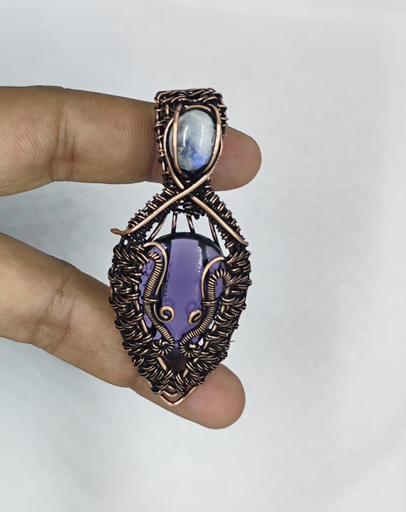 Natural Amethyst Moonstone Pendant, Copper Wire Wrapped Handmade Jewelry, Gemstone Pendant Gift for Him/Her, Birthday Gift, Mother Gift by CraftBharat